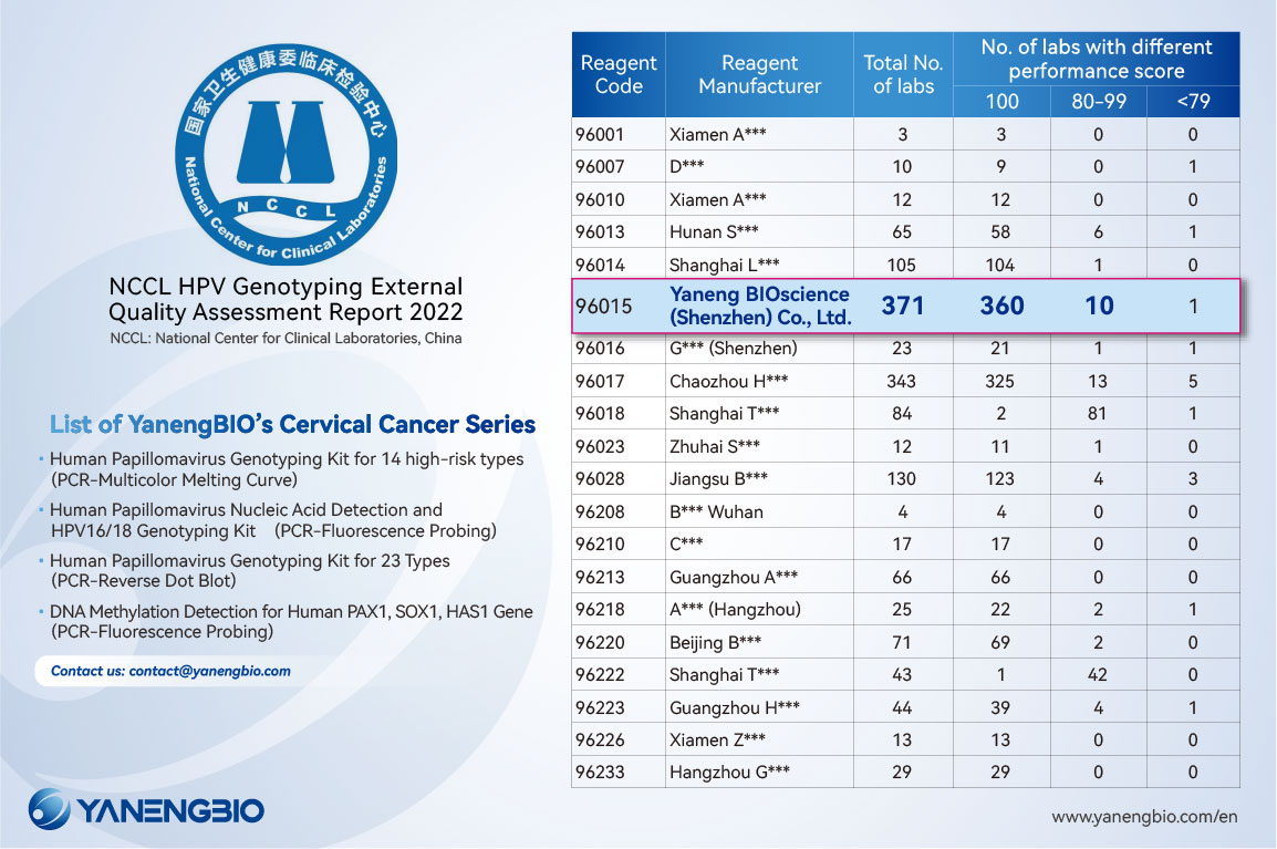Undoubtedly, YanengBIO is still in the FIRST PLACE in 2022 EQA of HPV genotyping tests. Results were released by China National Center for Clinical Laboratories.