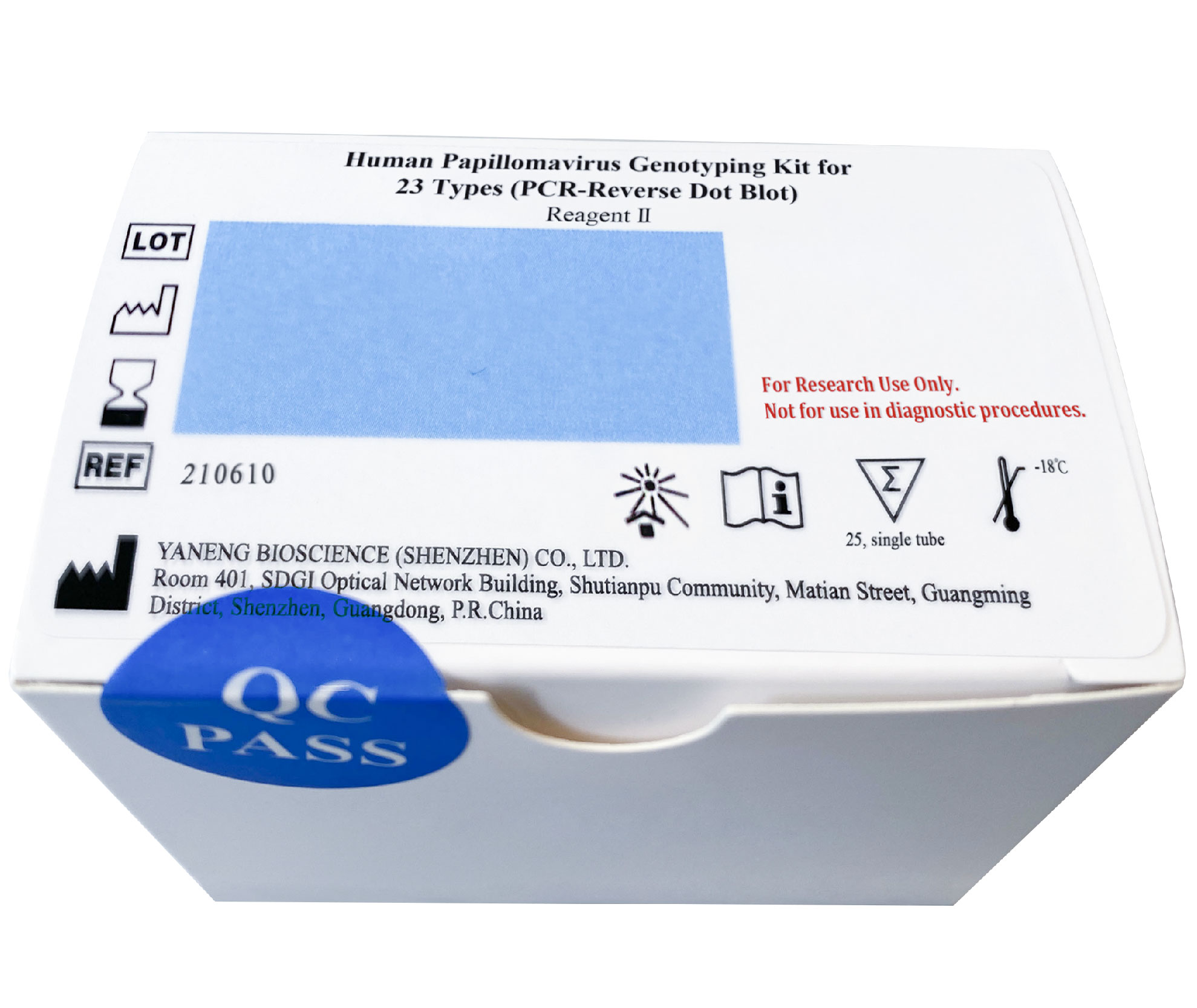 Human Papillomavirus Genotyping Kit for 23 Types (PCR-Reverse Dot Blot) is a qualitative test for genotyping detection of DNA for 23 HPV types in cervical specimens including 17 high risk (HR) HPV and 6 low risk (LR) HPV.