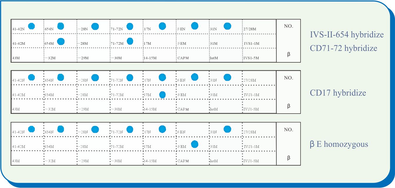 Beta-mediterranean anemia (β-thalassemia) is a kind of monogenic inheritance hemopathy due to expression imbalance of peptide chain caused by β-globin gene mutation. It is mostly caused by β-globin gene mutation. The commonly seen mutation sites are CD41/42, IVS-Ⅱ-654, -28, CD71/72, etc.