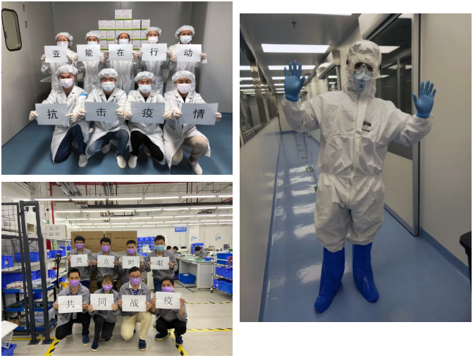 亞能生物秉持“發(fā)展分子診斷技術(shù),服務(wù)人類健康事業(yè)”的理念,以實際行動為打贏疫情防控阻擊戰(zhàn)貢獻企業(yè)力量、奉獻企業(yè)愛心。一方面聯(lián)合復(fù)星基金會積極籌備防疫急需物資,為奮戰(zhàn)在一線的醫(yī)護人員,檢驗人員撐起愛的保護傘,履行企業(yè)的社會責(zé)任;另一方面,企業(yè)內(nèi)部第一時間成立防控小組,并制定科學(xué)有效的措施保障企業(yè)員工的安全,有序安排復(fù)工。在各項措施保障下,目前企業(yè)生產(chǎn)產(chǎn)能穩(wěn)定,服務(wù)保障有序進行。